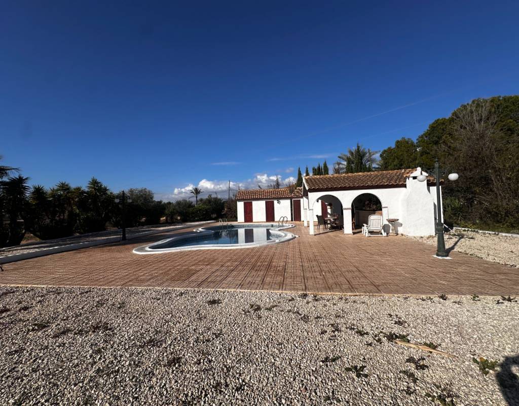 Superbe villa située sur une vaste parcelle de 5 000 m², dans un environnement calme de la partida de Crevillente, offrant de magnifiques vues dégagées sur la montagne et un cadre naturel privilégié.