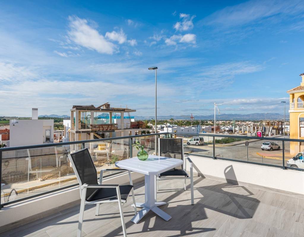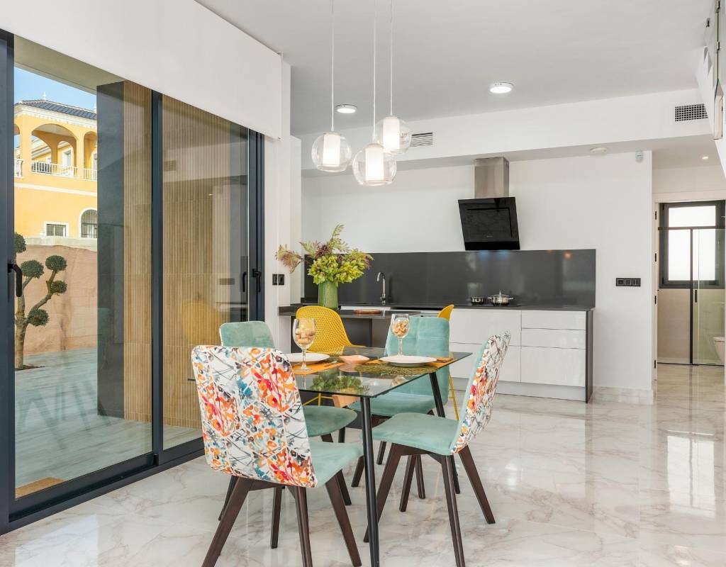 Déjame llevarte a un rincón donde la elegancia y la tranquilidad se fusionan en una sinfonía de confort: nuestra nueva villa de dos plantas en Benijófar. Esta residencia, que parece salida de un cuento, está estratégicamente ubicada cerca del campo de golf, ofreciéndote un estilo de vida lleno de distinción y serenidad.~~Imagina despertar cada mañana en una de las tres encantadoras habitaciones, todas diseñadas para ofrecerte un espacio acogedor y confortable. Con tres baños meticulosamente decorados, un luminoso salón comedor y una cocina abierta, cada detalle ha sido pensado para proporcionarte la máxima comodidad y elegancia. Además, la urbanización cuenta con su propia piscina comunitaria con jacuzzi para refrescarse bajo el sol del Mediterráneo.~~Relájate y desconecta en tu propio paraíso privado, donde una amplia parcela te ofrece un espacio donde poder hacer tu propio jardín o cenador y disfrutar de momentos inolvidables. Y para tu conveniencia, tendrás tu propia plaza de parking, garantizando un acceso fácil y seguro a tu hogar.~~Una de las ventajas de es la luminosidad excepcional que aporta en cada rincón por sus generosas ventanas y ventanales. Además, con una eficiencia energética A, estarás viviendo de manera sostenible sin comprometer el lujo y el confort.~~En este caso, la vivienda no cuenta con un el solárium en el tejado que se muestra en el vídeo, pero tenemos disponibles otras villas en el mismo residencial y con las mismas características que sí disponen del extra del solárium.~~Esta no es simplemente una casa; es el lugar donde tus sueños encuentran su hogar. No dejes pasar la oportunidad de hacer de esta villa tu santuario de lujo en Benijófar. Contáctanos hoy mismo y comienza a vivir la vida que te mereces.