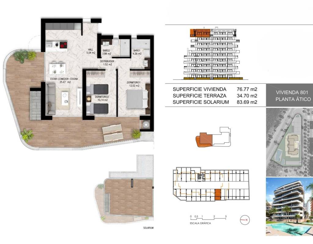 Te ofrecemos una oportunidad única de adquirir un espectacular inmueble de obra nueva en una urbanización exclusiva con piscina y vistas despejadas al río. Este impresionante apartamento de 2 habitaciones y 2 baños está diseñado para ofrecerte el máximo confort y calidad de vida. Con un total de 111.47 m2, que incluye una amplia terraza de 34.70 m2, tendrás todo el espacio que necesitas para disfrutar del clima y las vistas.~~Características clave:~~2 Dormitorios y 2 Baños: Espacios amplios y luminosos para tu comodidad y bienestar.~Vistas despejadas al río: Despierta cada día con un paisaje natural que te brinda paz y tranquilidad.~Piscina comunitaria: Ideal para relajarte y disfrutar del tiempo libre sin salir de casa.~Terraza amplia: Con 34.70 m2, perfecta para cenas al aire libre, tomar el sol o simplemente relajarte.~Solárium privado: 83,69 m2 para que disfrutes de las mejores puestas de sol.~Parking y trastero incluidos (hasta agosto de 2024): Con la comodidad de tener espacio adicional para almacenamiento y un lugar seguro para tu coche.~Pack de muebles y A/C incluidos: Amuebla y climatiza tu hogar sin coste adicional hasta el 31/08/2024.~Entrega prevista: noviembre de 2025~~Este es el único ático que sigue disponible de la promoción, pero si quieres consultar otras viviendas, seguimos teniendo algunas disponibles. La más económica se vende por 255.000 €.~~No dejes pasar esta oportunidad de vivir en un entorno que combina naturaleza, confort y elegancia. Esta es tu oportunidad de disfrutar de un estilo de vida privilegiado en una de las mejores ubicaciones de Guardamar del Segura.~~Contáctanos hoy mismo para más información y para organizar una visita. ¡Estamos aquí para ayudarte a encontrar tu hogar ideal!~~¡Descubre tu nuevo comienzo en Guardamar del Segura!~
