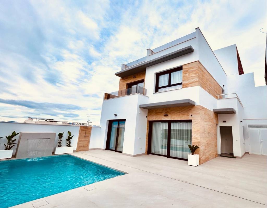 Te presentamos esta Nueva fase de chalets en zona residencial de Benijófar, con fecha de entrega en Febrero 2.026.~~Las viviendas se están reservando sobre plano pudiendo elegir entre varias opciones :~~- 3 dormitorios y 3 baños, construidas con excelentes calidades, con jardín, piscina privada, solárium y parking en la superficie dentro de tu parcela desde 465.000€ y con sótano desde 560.000€.~~Características adicionales :~Aire Acondicionado, Armarios empotrados, Balcón, Electrodomésticos, Persianas eléctricas, Piscina individual, Solárium, Suelo radiante en baños, Terraza, Vestidor. ~~Conexiones :~- 25 minutos del Aeropuerto de Alicante, a través de la autopista A7. ~- Destaca también la cercanía a las playas de Orihuela Costa y Torrevieja, a tan sólo 20 minutos de ambas costas y 10 minutos de las playas de Guardamar del Segura. ~~No dejes pasar esta oportunidad y habla con nosotros para visitarlo !!