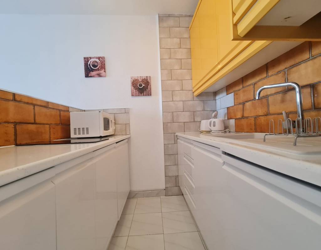 Включает гостиную с открытой кухней и барной стойкой, 1 спальню со встроенным шкафом и 1 ванную комнату с душевой кабиной. Оснащена потолочными вентиляторами для дополнительного комфорта.