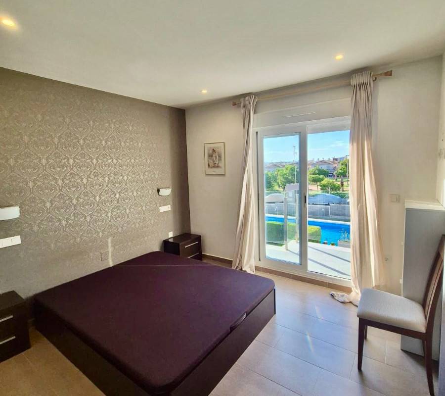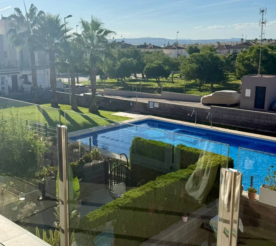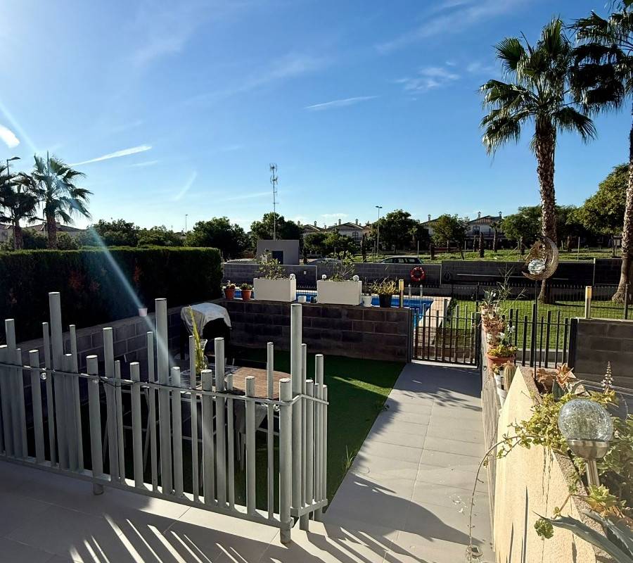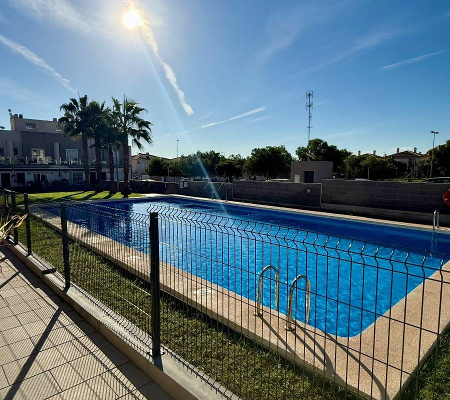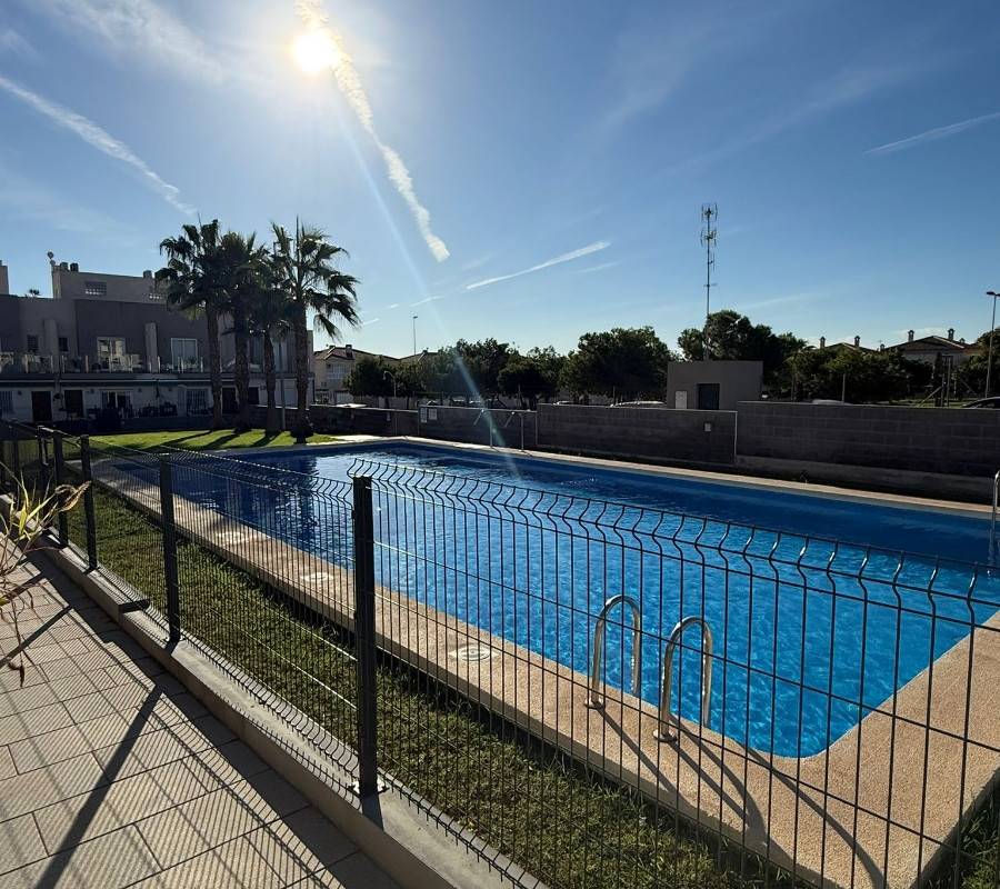 Upptäck denna imponerande villa belägen i det eftertraktade området Aguas Nuevas i Torrevieja. Med en boyta på 116 m² erbjuder denna fastighet rymliga utrymmen som är perfekta för familjens komfort. Den har två väl upplysta dubbelrum och tre badrum som garanterar privatlivet för sina boende. Huset är i gott skick och har många bekvämligheter: privat parkering, tillgång till gemensam pool och lekplatser som är perfekta för de minsta i familjen.